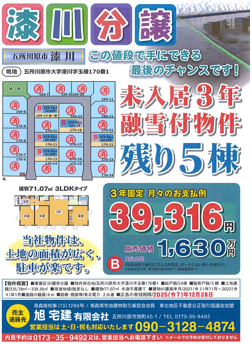 TEL.0173-35-9492 時間外 080-6057-0002 営業担当 090-3128-4874